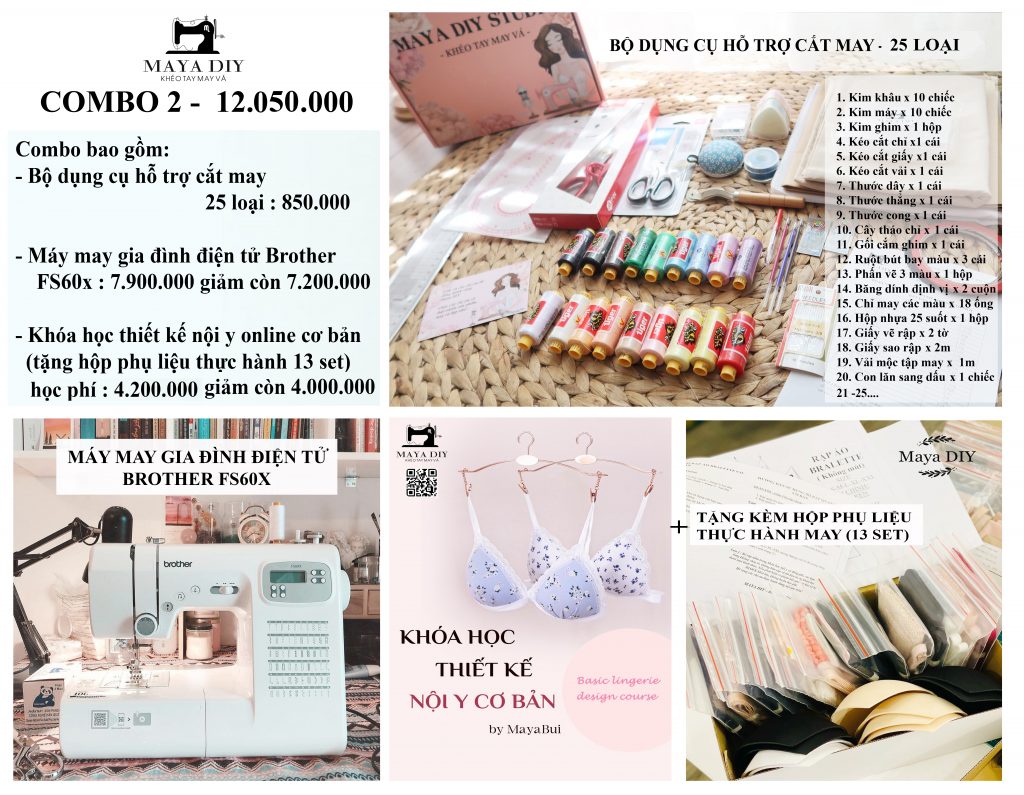 Combo 3 ( Khóa học + máy may + hộp dụng cụ )