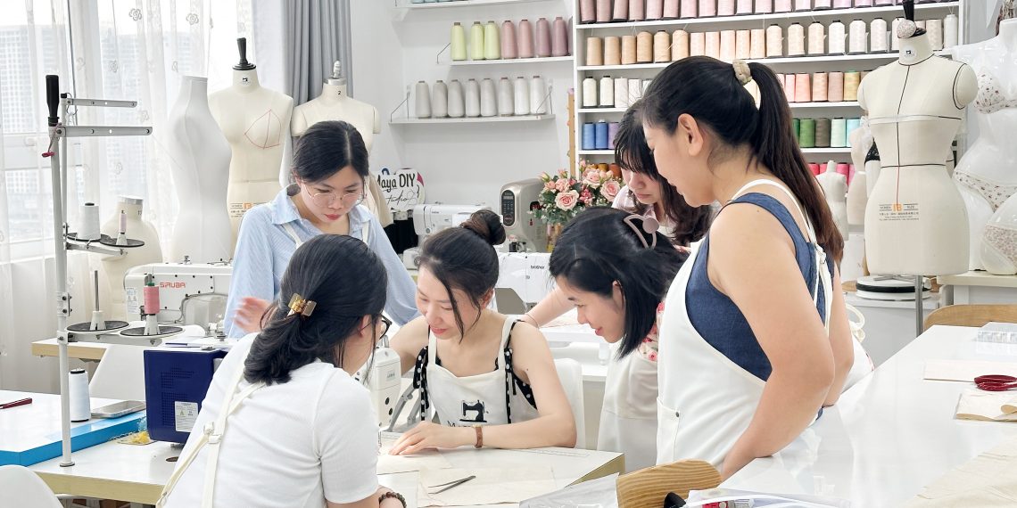 Khóa học gồm 14 buổi cụ thể về các loại áo không gọng, quần lót. Lớp học đầy đủ máy móc, nguyên phụ liệu để học viên thực hành may ra sản phẩm thật. Tặng khóa học online và một túi dụng cụ may vá khi đăng kí sớm.
