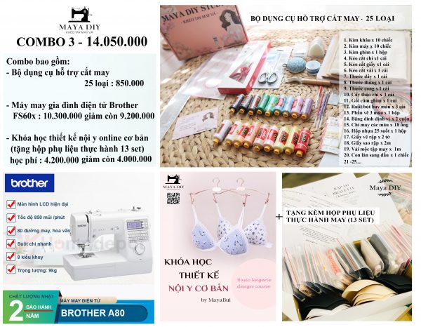 Combo 3 ( Khóa học + máy may + hộp dụng cụ )