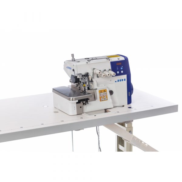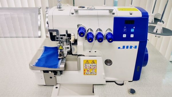 Máy vắt sổ công nghiệp 2 kim 4 chỉ JIN M1-424NS tích hợp motor liền trục hiện đại, hoạt động êm, tiết kiệm điện, chuyên dùng để vắt sổ mép vải co giãn, đường may đẹp và bền, phù hợp cho xưởng sản xuất vừa và lớn.